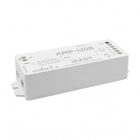 2x20W 4Ω Esto indica que el amplificador puede entregar 20 watts RMS por canal (estéreo) a una impedancia de 4 ohmios, lo que es adecuado para altavoces de baja impedancia y garantiza un sonido claro y potente en espacios pequeños o medianos.